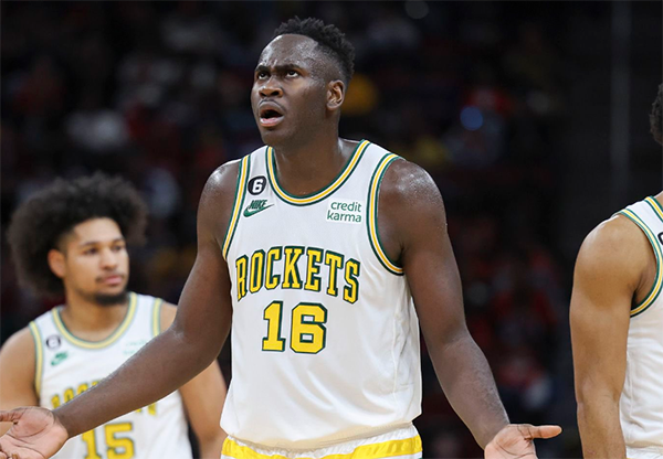 加鲁巴现年21岁,身高2米03,体重103公斤,2021年被火箭用首轮23号签选中,生涯前2年都为火箭效力,出战99场常规赛,场均仅仅上场12.2分钟拿到2.8分3.9篮板。
