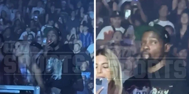 在Drake的巡回演唱会现场,除了杜兰特之外,特里斯坦-汤普森、金-卡戴珊、詹娜与坏兔子以及乔丹之子马库斯-乔丹与女友拉萨-皮蓬都在现场,其中布克前队友詹娜与坏兔子当众激情拥吻,估计这一幕会刺激到布克吧。