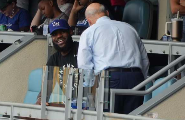 在比赛期间通过大屏幕展示詹姆斯到场时,道奇官方宣布将为詹姆斯的家庭基金会捐款10万美元,全场响起热烈的掌声,老詹起立致敬;之后道奇队总裁兼首席执行官StanKasten代表道奇队手持10万美元的捐款支票与詹姆斯合影,该笔捐款将用于支持詹姆斯家庭基金会旗下的“IPromise”学校项目。