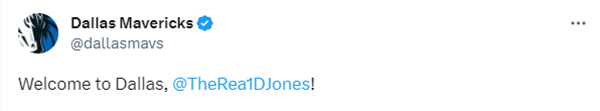 独行侠官方宣布正式签下前锋小德里克-琼斯,后者将在新赛季身披55号球衣,独行侠欢迎小琼斯来到达拉斯;据此前报道,小德里克-琼斯与独行侠签下的是一份为期一年的完全保障合同。
