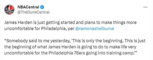 Ramona Shelburne报道,哈登炮轰莫雷只是逼宫的开始,他就是想要让76人进入新赛季训练营之前赶到不舒服;换言之,哈登可能做出更疯狂的逼宫举动。