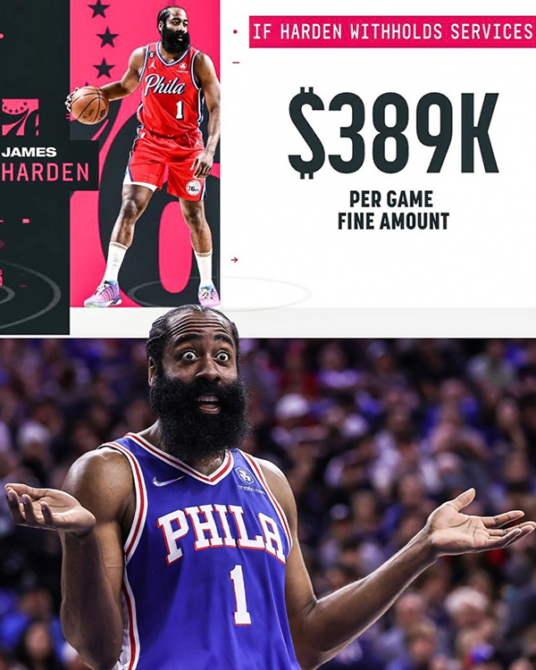若哈登新赛季拒绝为76人上场,他每场会损失多少钱呢?据统计,若哈登拒绝出战,他每场比赛将被罚款38.9万美元;另外根据劳资协议,若哈登超过30天没有为76人效力,76人可以阻止哈登与任何球队签约。