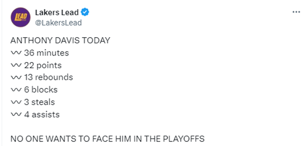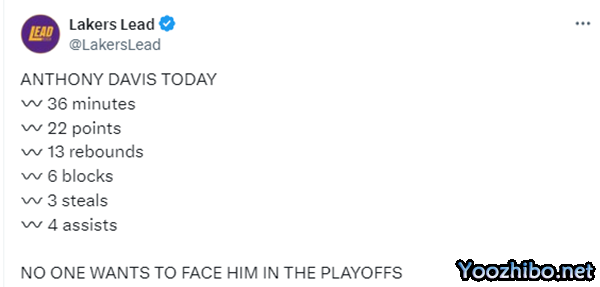 湖人媒体晒浓眉的数据并且表示:没有人想要在季后赛碰到他。