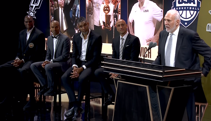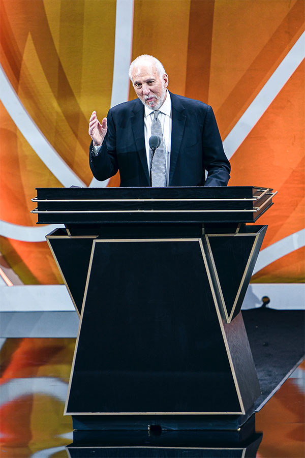 波波维奇感谢自己过世的妻子,还感谢自己其他的家人;波波维奇呼吁NBA重返西雅图;演讲期间,波波维奇与邓肯、吉诺比利、帕克和罗宾逊握手,随后主持人Ahmad Rashad上台(他以为波波维奇演讲结束了),直接被波波维奇赶走。