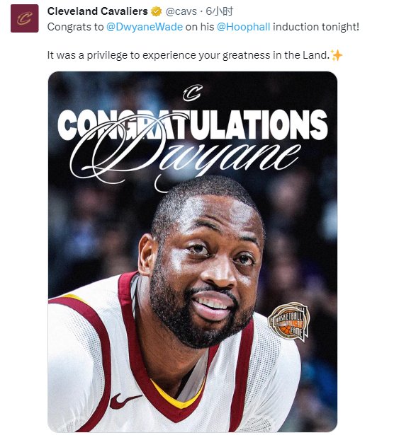 迈阿密热火、克利夫兰骑士和芝加哥公牛都发推祝贺韦德入选名人堂;热火官方声明:我们为你自豪。队史最佳球员!你现在正式成为了他们中的一员,恭祝你首轮投票就入选名人堂。
