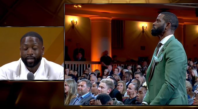 在托尼-帕克、保罗-加索尔、波波维奇、哈蒙和诺维斯基之后,韦德正式上台发表入堂演讲,他的引荐人艾弗森身穿印着“韦德 3号”字样的西装出席,答案用这样的方式致敬韦德,安东尼、保罗、塔图姆、热火主帅斯波尔斯特拉、哈斯勒姆、莱利以及阿德巴约都来到现场,詹姆斯缺席。