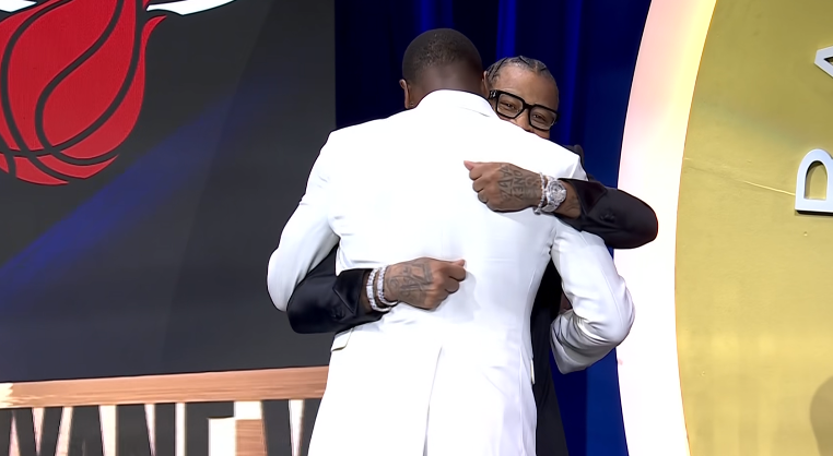 韦德点名感谢自己的妻子、母亲和父亲,韦德深情感谢自己的父亲,之后老韦德走上讲台,父子两人紧紧拥抱,最终韦德说了一句“我们一起进入名人堂了”;随后韦德演讲结束。