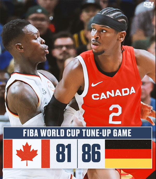 在这一场热身赛中,德国男篮第一节27-14领先13分,第二节继续掌控主动权,半场打完50-34领先到16分;下半场,加拿大第三节追回8分,末节与德国打得十分精彩,不过关键时刻,施罗德掌控比赛,小瓦格纳轰进关键三分,最终德国拿下胜利。