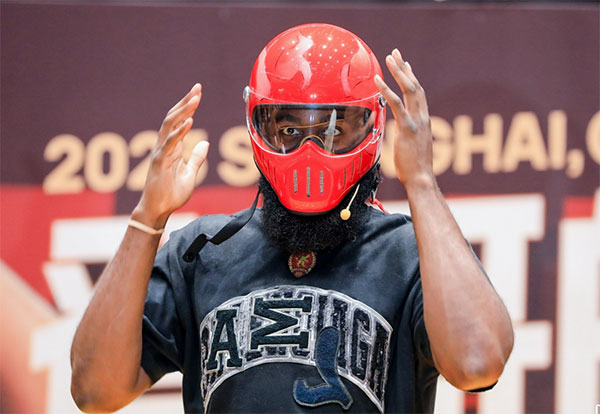 在上海站活动现场,哈登收到头盔礼物,哈登开心地当场戴上,值得一提的是,2019年哈登中国行时曾在上海街头骑小电驴,因没有佩戴头盔被交警拦下。