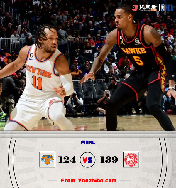老鹰139-124击败尼克斯 特雷-杨27+6 穆雷29+6+12 兰德尔32+9+6