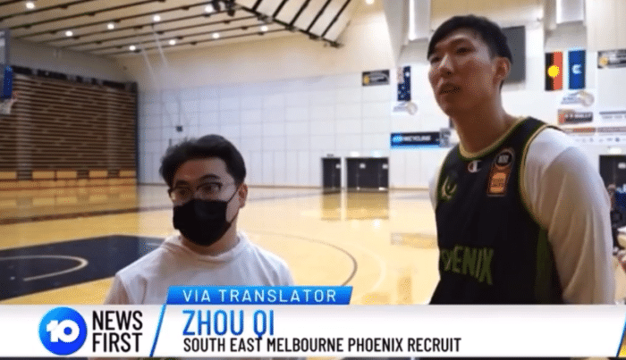 周琦与墨尔本东南凤凰队进行合练,同时也进行了单独的测试环节,其中澳洲当地的电视台也针对周琦抵达新球队进行了针对性的报道。期间也有对于周琦简短的采访,我们发现他都是用中文进行回答,一旁有翻译。很显然,虽然周琦有在学习英语,甚至在NBA打拼过,但他的英语想要达到流畅的程度,还是有一定的差距,所以身边是有翻译陪同的。