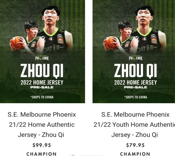 值得一提的是周琦在新东家的战袍价格并不便宜,售价110澳元,约合人民币523元。相比起CBA的战袍,周琦的新战袍价格确实不菲,当然联想到周琦在国内还是很有影响力的,也是当打之年的国手,不论是通过赛场上的表现还是参加综艺节目,拥有很多的粉丝,所以新款战袍的销量还是很好的。尤其是墨尔本地区的华人是很多的,周琦去到之后,球衣销量和上座率都会有保障的。