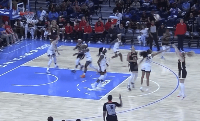 第三节中段,芝加哥天空疯狂追分,李梦在场边骑车,进行热身,可惜这一节李梦没有上场。第四节,对手一波流抹平分差,双方鏖战,李梦没有出场,这样她在本场比赛的数据就定格在出场接近3分钟,斩获3分。神秘人顶住压力,险胜对手,结束连败势头。