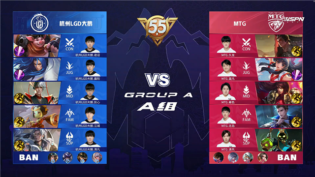 杭州LGD大鹅禁用:镜、鲁班大师、关羽、不知火舞