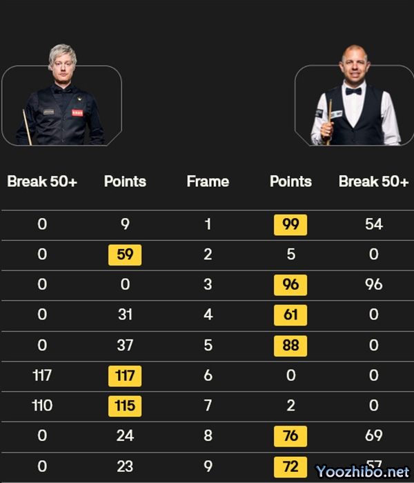 178直播讯 北京时间1月9日,2024斯诺克大师赛第1轮中,尼尔-罗伯逊对阵巴里-霍金斯,最终阵巴里-霍金斯凭借单杆打出54分、96分、69分和57分,总比分6-3击败尼尔-罗伯逊,顺利挺进到了8强!