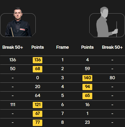收尾阶段:在比赛的最后几局中,塞尔比和王信伯都展现出了极高的竞技水平。双方你来我往,比分交替上升。最终,塞尔比凭借一杆关键的高分和稳定的发挥,以5-3的比分锁定了胜局。