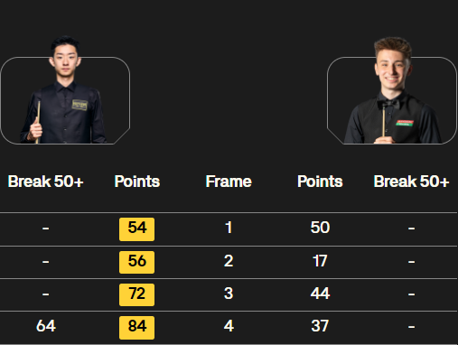 首局激战:开场即白热化,双方比分胶着,每一分都扣人心弦。关键时刻,吴宜泽挺身而出,一连串精准击球连得高分,最终以54:50的微弱优势险胜,为比赛奠定了胜利基调,赢得开门红。