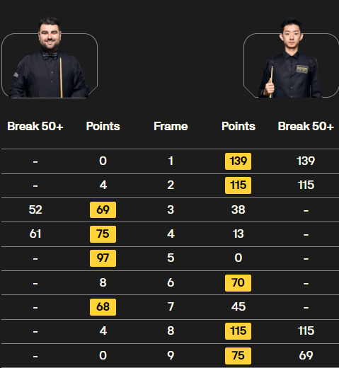 詹姆-克拉克则可能在这一阶段感受到了吴宜泽的强大攻势,虽然他也努力寻求反击的机会,但可能在一些关键时刻出现了失误。