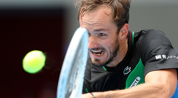 178直播讯 10月2日,2023年中国网球公开赛男子单打1/4决赛在北京举行,俄罗斯选手梅德韦杰夫2比1战胜法国选手安贝尔,晋级半决赛。图为梅德韦杰夫在比赛中。