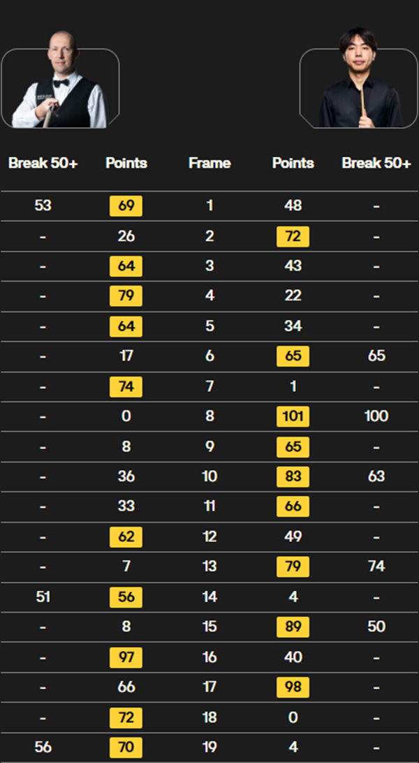 2025斯诺克单局限时赛首轮战报:48-18!高阳零失误碾压霍尔沃斯