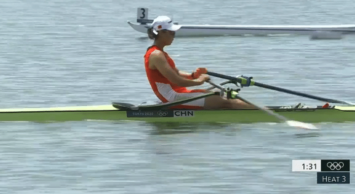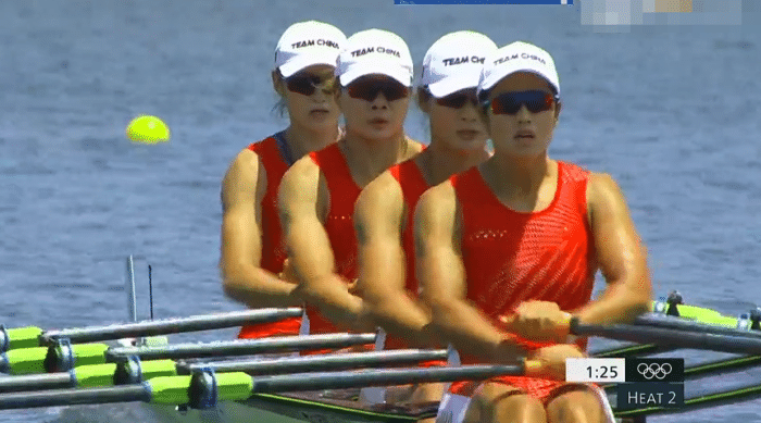 奥运会赛艇女子四人双桨分组预赛的比赛,中国队陈云霞、张灵、吕扬、崔晓桐出战,这个项目是中国队的优势项目,中国队很快的就已经冲到了第一的位置 ,拉开了与其他四支队伍很远的距离,最终中国队轻松获得第一中晋级。