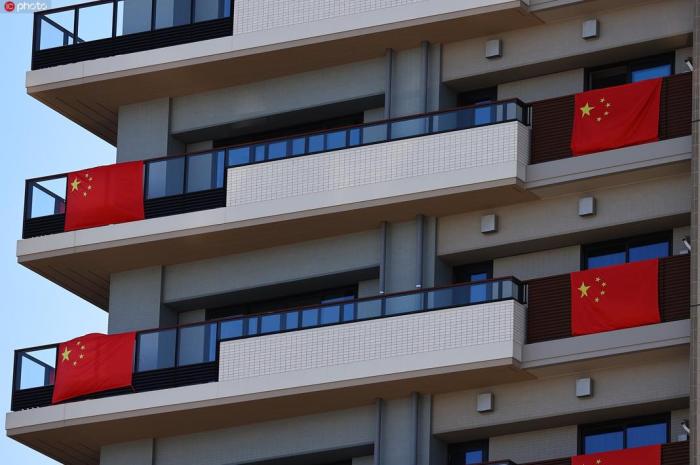 178直播讯 现在距离东京奥运会正式开幕还有4天时间,中国代表团已有三批成员抵达东京并入住了奥运村,而今天,中国代表团下榻的奥运村大楼已经挂上五星红旗和横幅。
