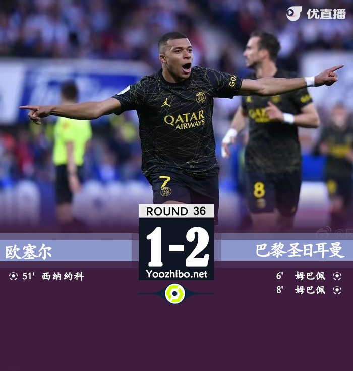 178直播讯 北京时间5月22日凌晨2:45,2022-23赛季法甲联赛第36轮,巴黎圣日耳曼客战欧塞尔。上半场姆巴佩双响,梅西助攻,埃基蒂克失空门;下半场西纳约科破门,埃基蒂克伤退,最终巴黎2-1击败欧塞尔,积分来到84分,领先第二的朗斯6分,欧塞尔仍积34分,排名联赛第16位。