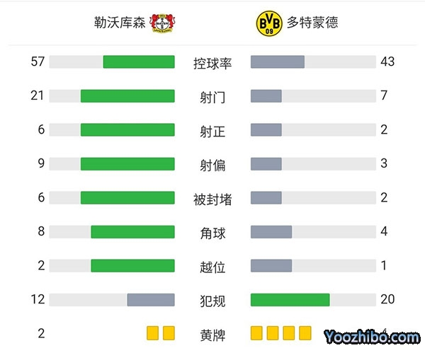 全场比赛结束,最终多特客场2-0战胜勒沃库森。