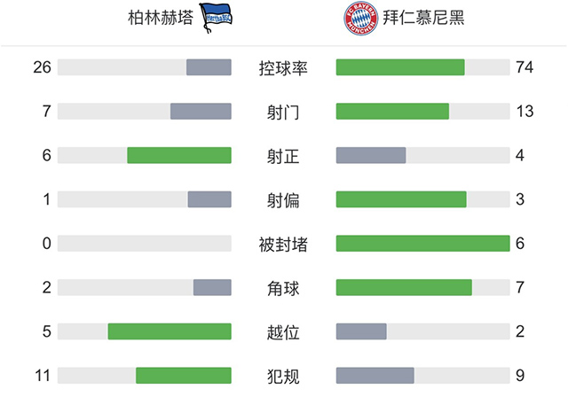 下半场伤停补时4分钟,全场比赛结束,最终拜仁3-2击败柏林赫塔,迎来联赛四连胜。
