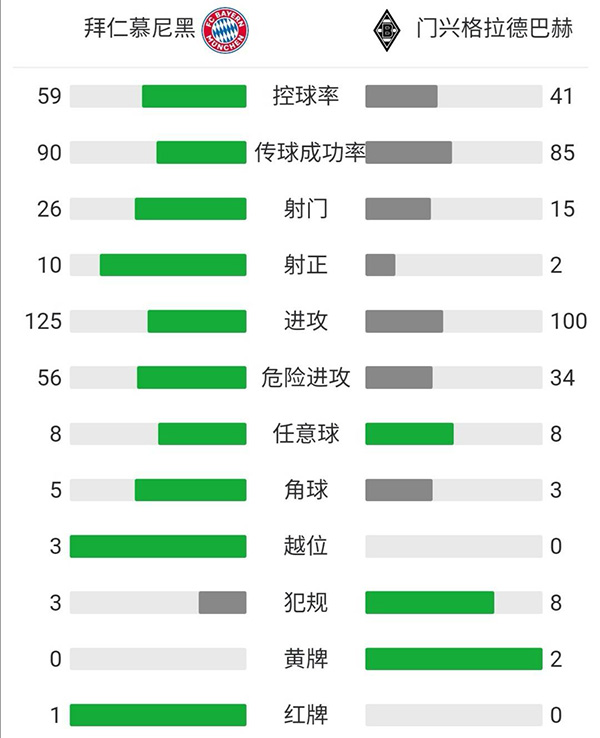 全场比赛结束,拜仁6-0横扫门兴。