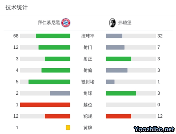 全场比赛结束,拜仁慕尼黑2-0弗莱堡。