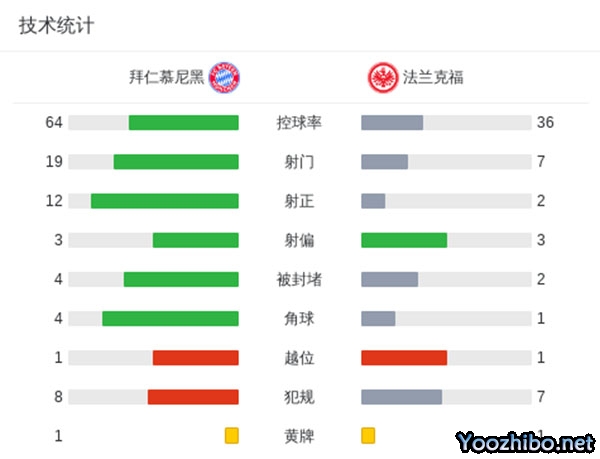 全场结束,拜仁4-0法兰克福。