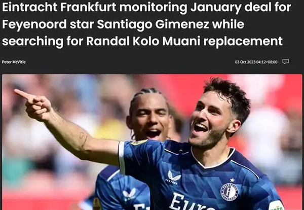 178直播10月03日讯 据德国天空体育记者弗洛里安-普莱滕贝格透露,法兰克福正在考虑一月份引进费耶诺德前锋圣地亚哥-吉梅内斯,同时继续寻找兰达尔-科洛-穆阿尼的替代者。