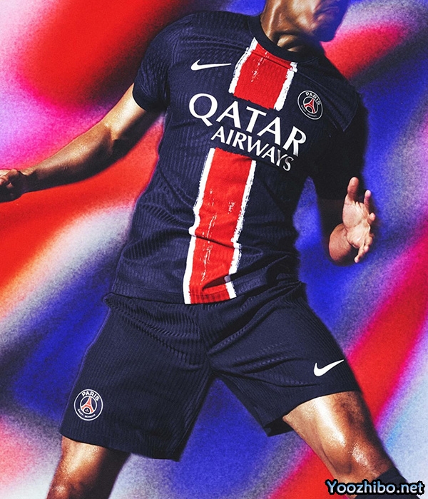 球衣的核心在于对标志性中央红色条纹的重新诠释,设计师们以流畅而动态的笔触风格,赋予这一经典元素以全新的生命力。红色条纹如同城市脉动般跃然于球衣之上,两侧则以细腻的白色线条勾勒,形成鲜明的视觉对比,既凸显了巴黎圣日耳曼俱乐部的传统色彩,又展现了其作为时尚先锋的独特魅力。这样的设计不仅是对俱乐部历史的传承,更是对其鲜明个性和创新精神的最佳诠释,成为了俱乐部新一代球员与球迷心中的共同符号。
