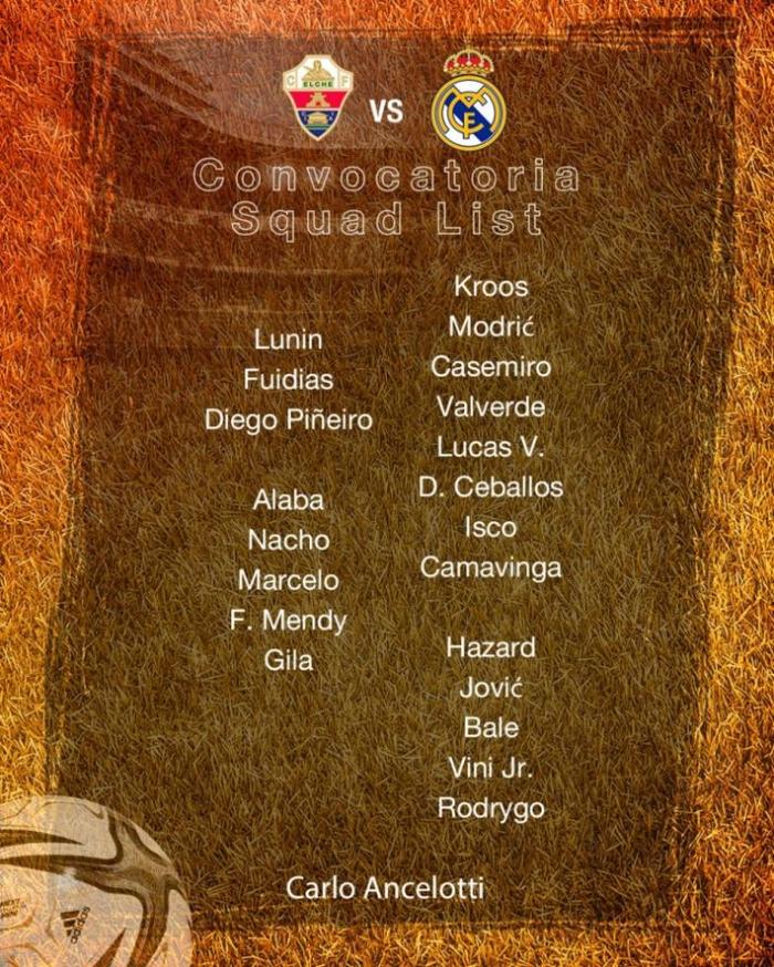 178直播01月20日讯 ,皇马公布了国王杯对阵埃尔切的大名单,贝尔时隔38天再次回归皇马大名单,阿森西奥缺席。