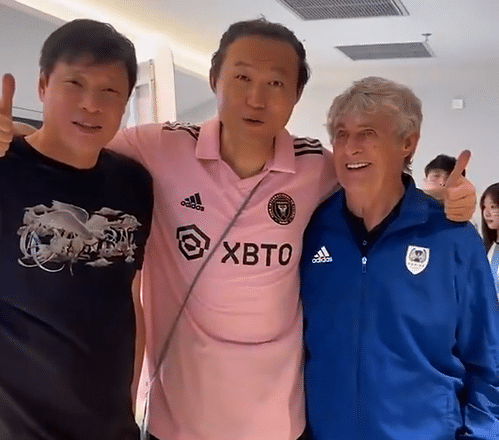 比赛结束之后,梅西给前国足队长于大宝签名,梅西身边还看到了拉维奇,拉维奇是梅西的挚友,也是阿根廷队名宿,还曾经在河北华夏幸福效力多年,与梅西的关系非常好。