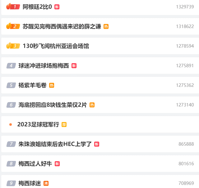 收视率很高,网络上的热度也是居高不下,热搜榜直接是霸屏的状态,梅西的影响力可以用“惊人”来形容,确实无人能敌。