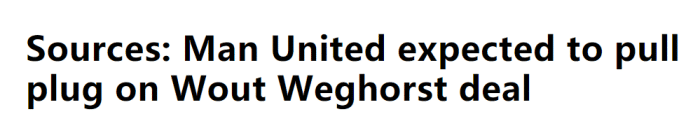 178直播02月22日讯 据英国媒体FootballInsider报道,曼联预计今夏不会买断韦格霍斯特。