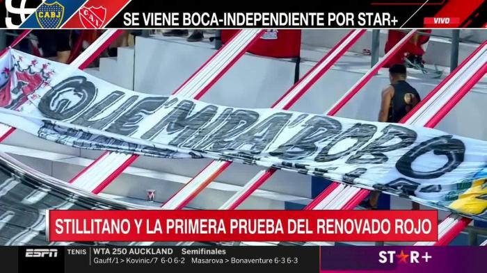178直播01月08日讯 的一场阿夏赛小组赛,博卡青年0-0战平独立,比赛中独立球迷在看台上拉出“给你俩窝窝”的横幅。
