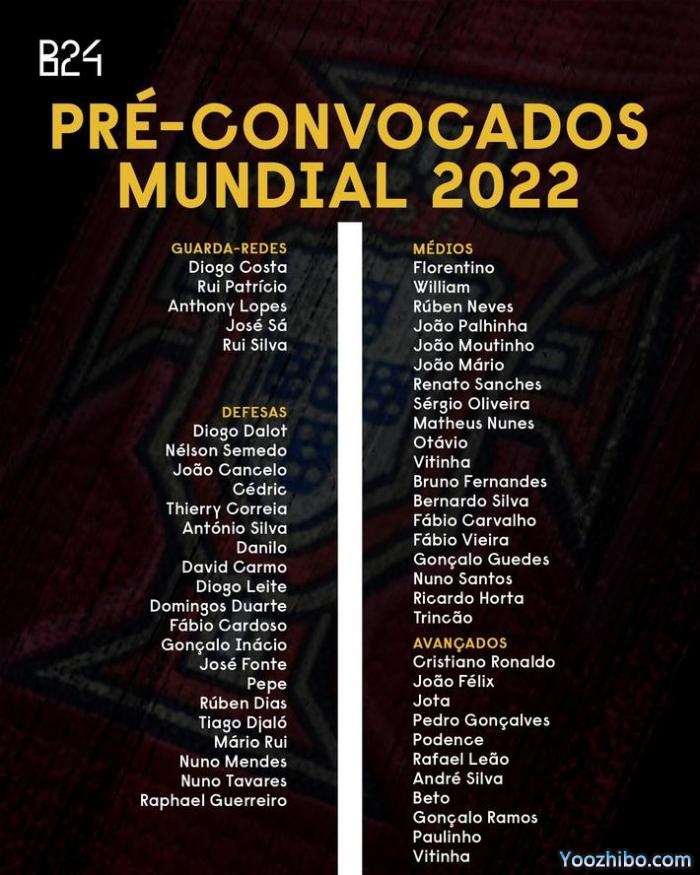 178直播10月24日葡萄牙《晨邮报》今日披露了葡萄牙国家队的世界杯初选名单,C罗领衔,B费、B席均入选,若塔因伤缺席。