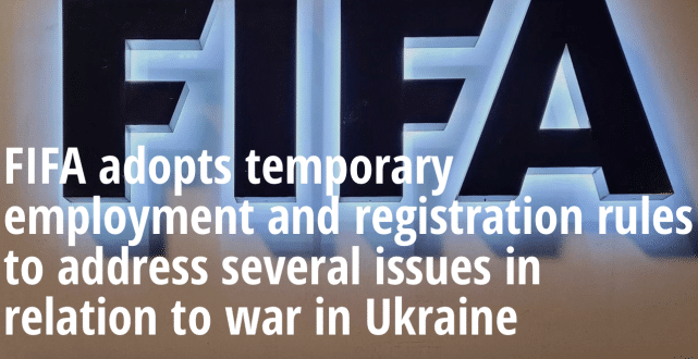 国际足联(FIFA)官方宣布暂时修改转会规则,在乌克兰和俄罗斯联赛采用临时转会制度,乌克兰外籍球员及教练的合同“自动中止”,俄罗斯外籍球员及教练的合同,则可单方面中止。