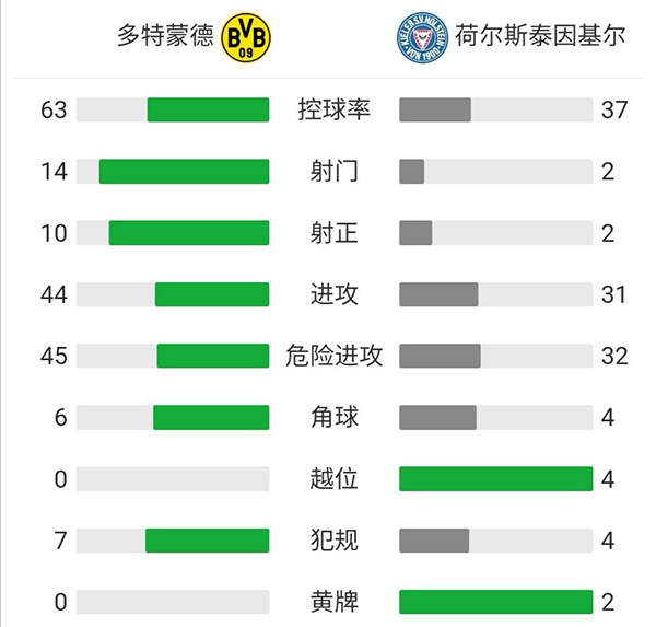 全场比赛结束,多特蒙德5-0荷尔斯泰因基尔。