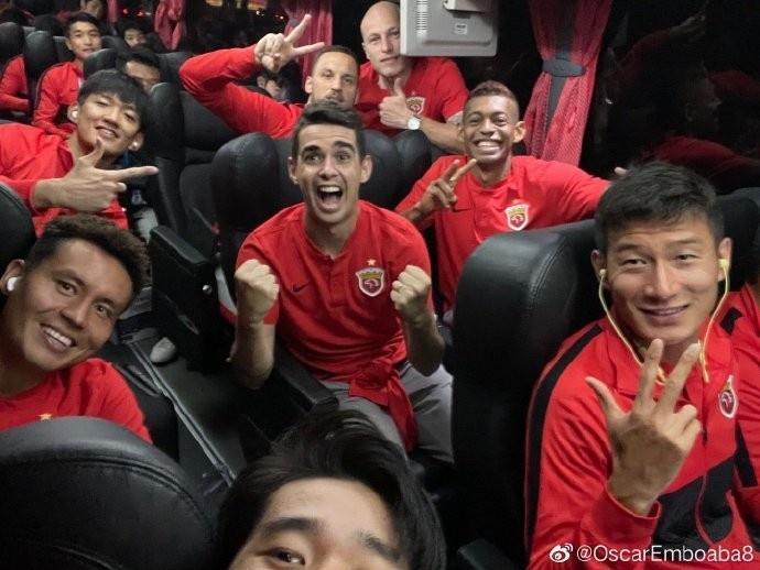 比赛结束后,奥斯卡在微博晒出了他与队友们在球队大巴上庆祝的合影,他还鼓励表示:“稳稳的,接着干!”