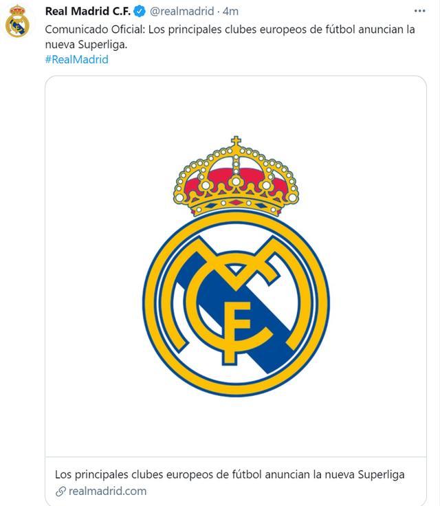 北京时间4月19日凌晨,欧洲超级联赛正式成立,随后