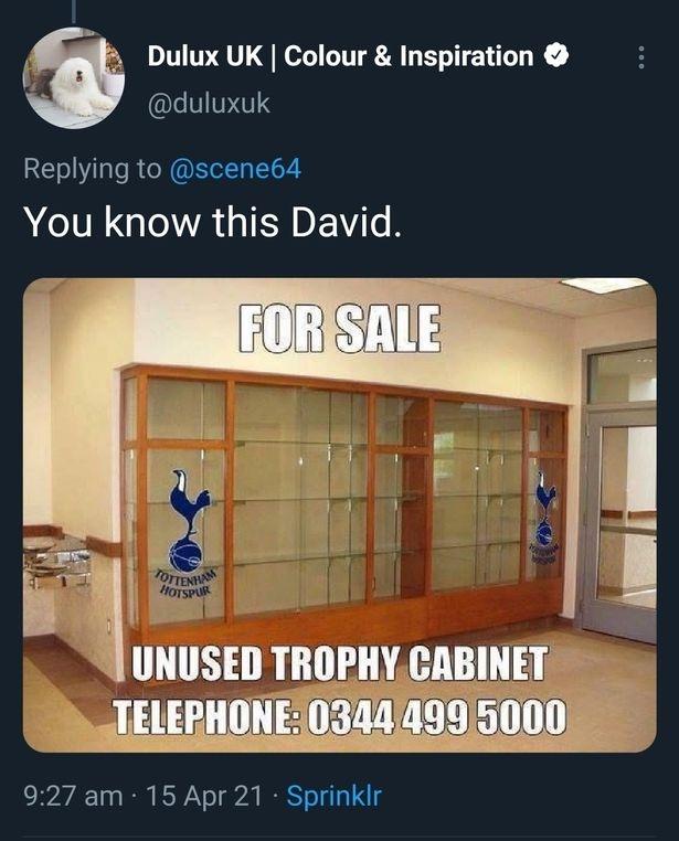热刺官宣了多乐士成为球队的赞助商之后,有球迷询问多乐士什么时候给热刺的奖杯柜粉刷一下,随后多乐士官方回应:“大卫(提问的球迷),你知道的。”随后,多乐士给出了一个空的奖杯柜的照片。而这个推特被认为是在嘲讽球队无冠,这也引起了不少球迷的不满。随后,多乐士就删除了推特,不过不少球迷还是留下了截图,而多乐士也不得不为此道歉。