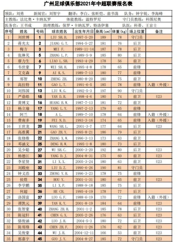 从名单上来看,广州队基本维持了上赛季的阵容。徐新等多人离队,对球队是有影响,但影响不大。