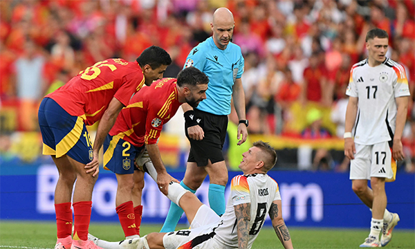 178直播讯 北京时间7月6日,欧洲杯1/4决赛,西班牙队第119分钟绝杀,通过加时赛以2比1淘汰东道主德国队,晋级四强。随着德国队的出局,克罗斯也正式结束自己的球员生涯,赛后包括对手的球员和球迷,纷纷致敬克罗斯,他没有能够拿下欧洲杯冠军,从而加冕大满贯的目标,非常遗憾。