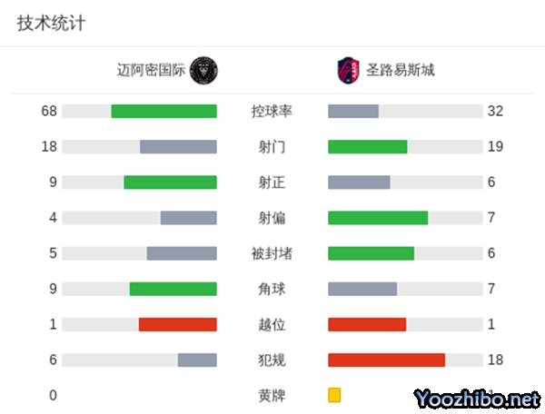 最终迈阿密国际3-3圣路易斯城两轮不胜。