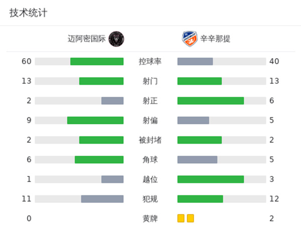 最终,迈阿密国际0-1辛辛那提。