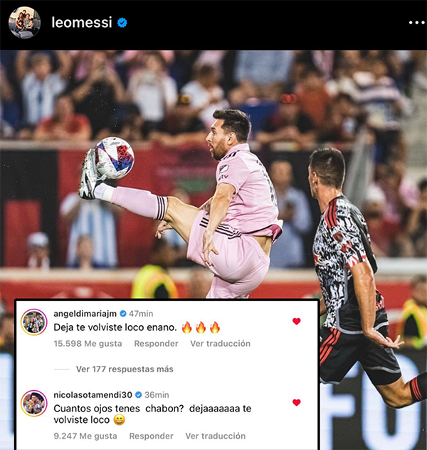 比赛结束之后梅西的美职联首球引发热议,国家队的挚友迪马利亚也一直关注着梅西的比赛,看到球王破门,迪马利亚直呼疯狂。同样也是阿根廷队友的奥塔门迪表示:你到底有多少只眼睛?别说了,你疯了。